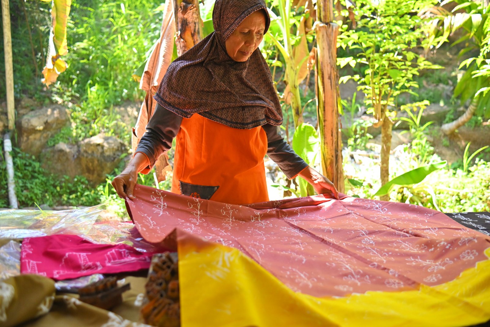 Dalam proses produksinya, Griya Batik Arang menggunakan kombinasi berbagai teknik untuk melayani pasar yang luas. Mereka banyak menggunakan teknik batik cap (stempel) untuk produksi berskala besar, terutama untuk memenuhi permintaan seragam dari Aparatur Sipil Negara (ASN) dan berbagai institusi di Sawahlunto. Meskipun demikian, teknik batik tulis juga tetap dipertahankan untuk produk-produk custom dan eksklusif yang membutuhkan detail dan nilai seni yang lebih tinggi. Kualitas bahan dan ketelitian pengerjaan menjadi fokus utama agar produknya memiliki daya tahan dan nilai estetika yang premium.