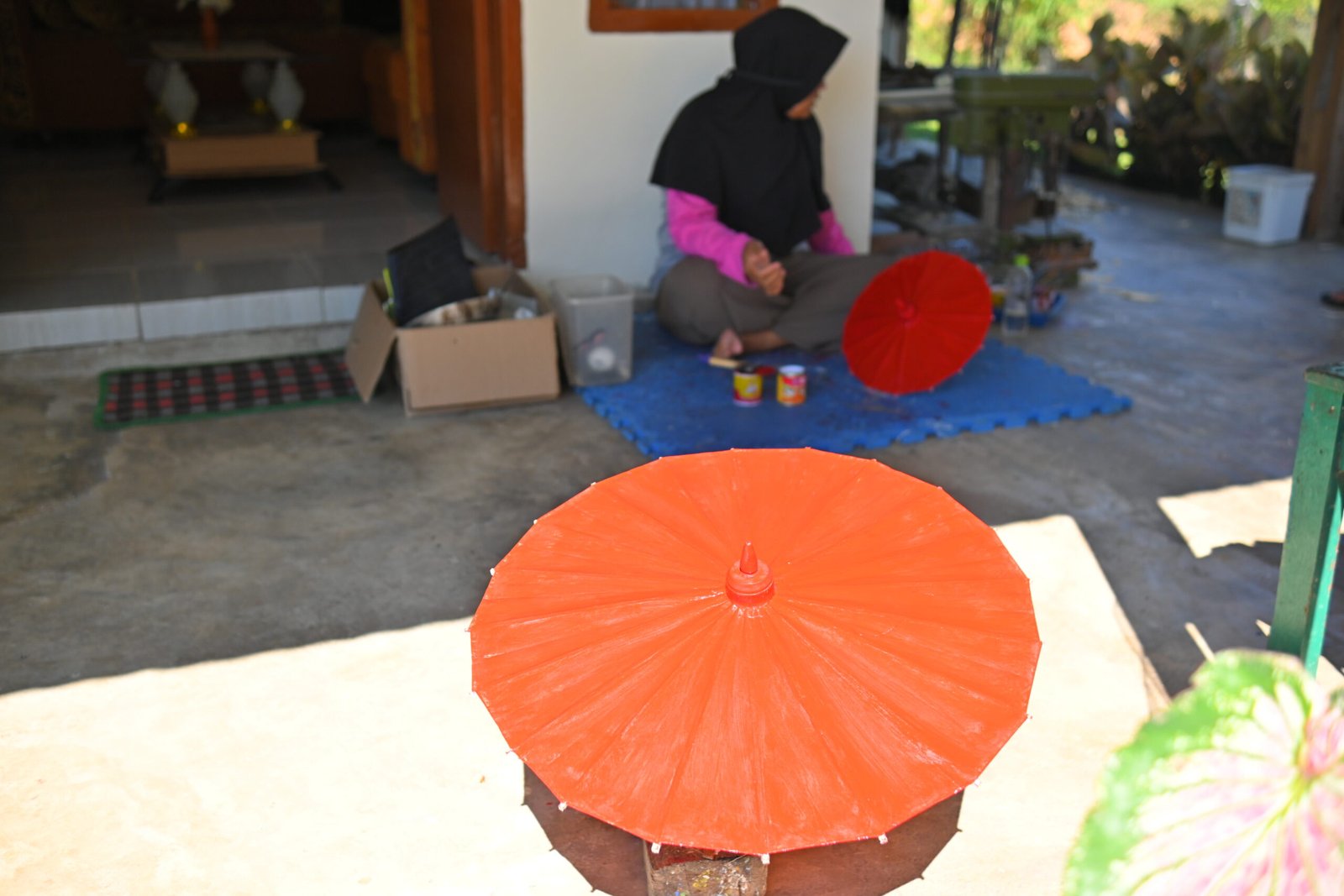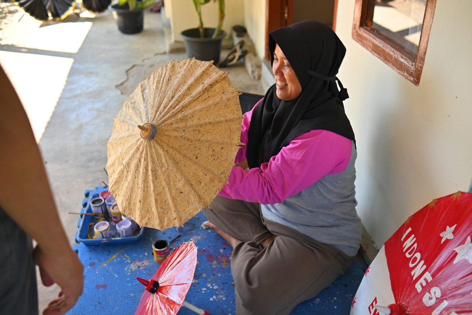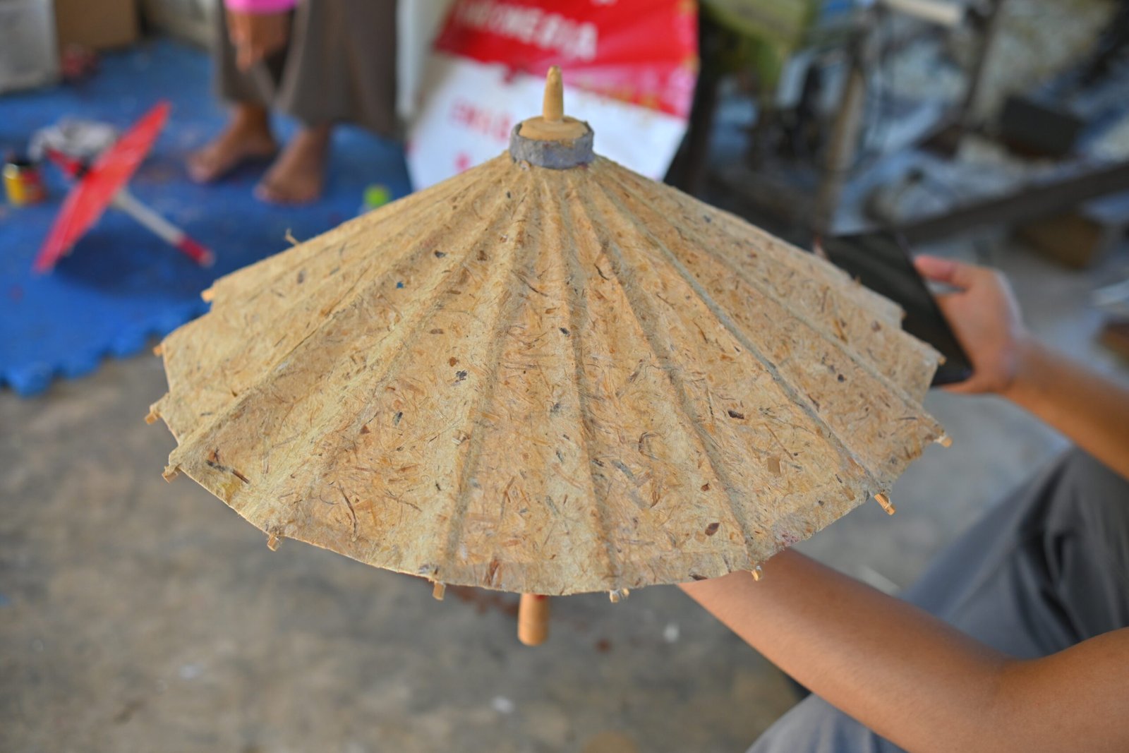 Proses pembuatan Payung Kote dilakukan secara tradisional dan handmade oleh para perajin di Talawi. Rangka payung dibangun menggunakan bahan alami, yaitu bambu, yang disusun dengan detail. Rangka inilah yang kemudian ditutup dengan kertas atau kain tipis khusus (mengacu pada makna Kote). Meskipun bahan dasarnya sederhana, Payung Kote dihias secara rumit, sering kali melalui proses lukisan tangan, sulaman, atau penempelan kain dekoratif lainnya. Keterampilan ini diwariskan secara turun-temurun, menjadikan setiap payung memiliki sentuhan personal dan nilai artistik yang tinggi.