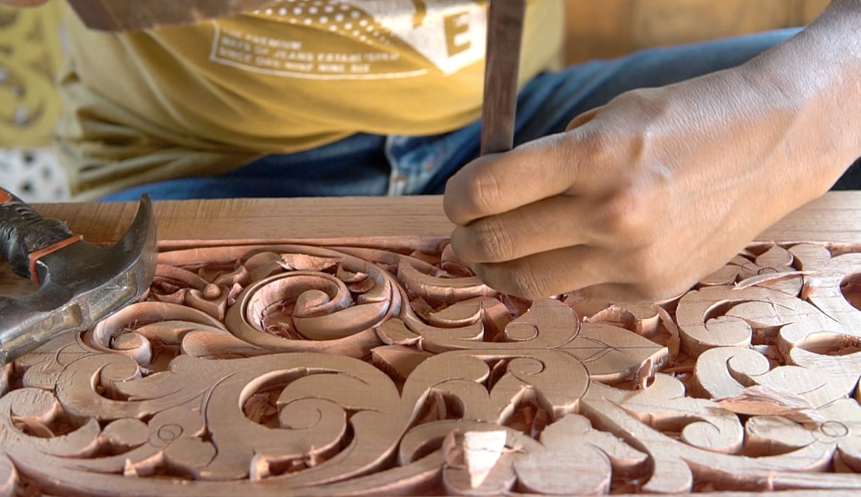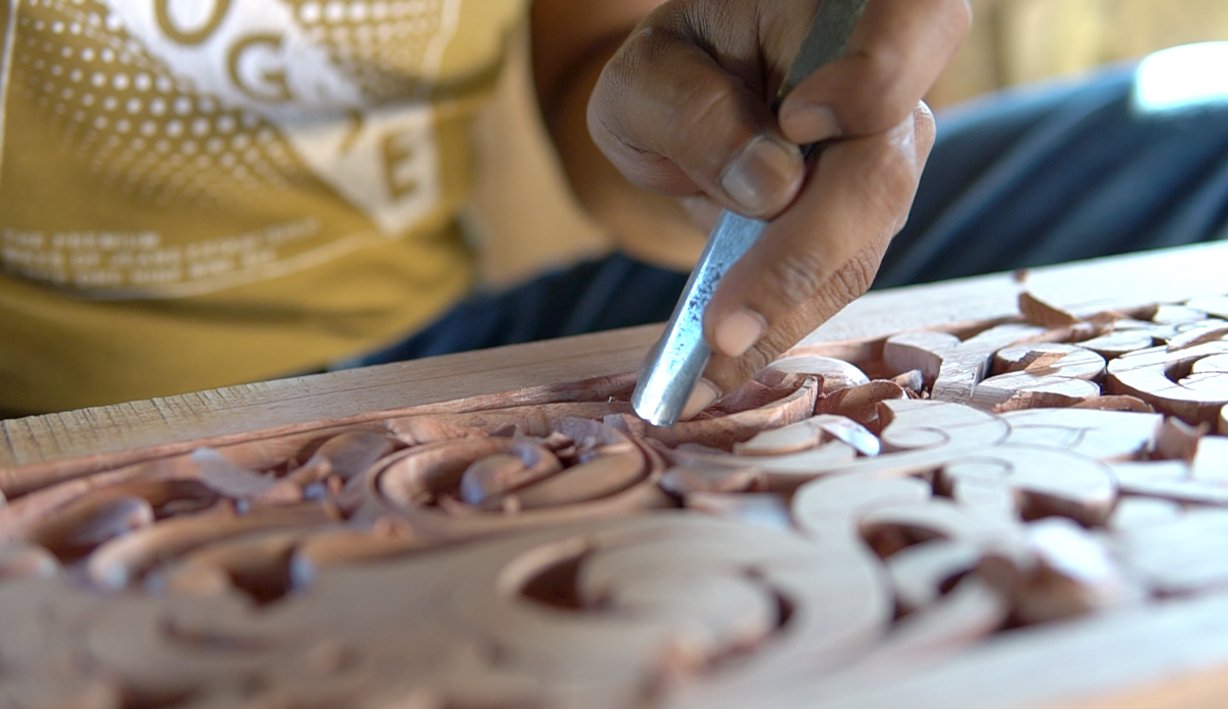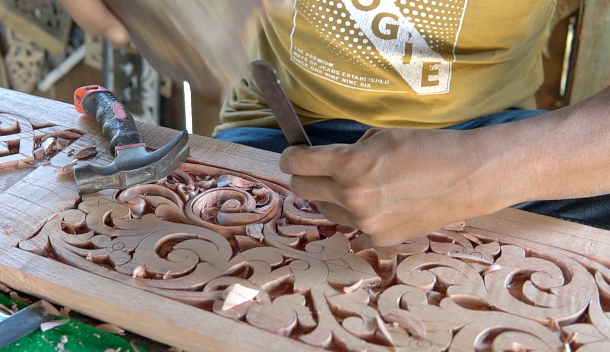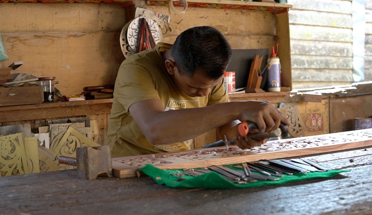 Di Wilayah Minangkabau seni ukir kayu diterapkan pada bangunan rumah adat. Selain diterapkan pada bangunan, ornamen juga diterapkan pada perabotan, kain tenun, dan produk bahan logam, seperti kerajinan perak, emas dan kuningan. Di Minangkabau dapat digolongkan menjadi tiga bagian yaitu berasal dari bentuk tumbuh-tumbuhan, berasal dari bentuk binatang dan berasal dari bentuk benda-benda. Seni ukir tradisional di Minangkabau memiliki tiga jenis ukiran yang berdasarkan inspirasi terbentuknya seni ukiran. Pertama adalah seni ukir yang terinspirasi dari nama flora yaitu tumbuh-tumbuhan seperti aka barayun, aka duo ganggang, aka taranang, bungo anau, buah anau, bungo taratai dalam aie, daun puluik-puluik, daun bodi jo kipeh cino, kaluak paku kacang balimbiang, siriah gadang, dan siriah naiak. Kedua adalah seni ukir yang terinspirasi dari nama fauna yaitu hewan, seperti ayam mancotok dalam kandang, bada mudiak, gajah badorong, harimau dalam parangkok, itiak pulang patang, kuciang lalok, kijang balari dalam ransang, dan tupai managun. Ketiga seni ukir yang terinspirasi dari nama-nama benda-benda yang dipakai dalam kehidupan sehari-hari seperti ambun dewi, aie bapesong, ati-ati, carano kanso, jalo taserak, jarek takambang, jambua jarek rang pitalah, kaluak barayun, lapiah duo, limpapeh, kipeh cino dan sajamba makan